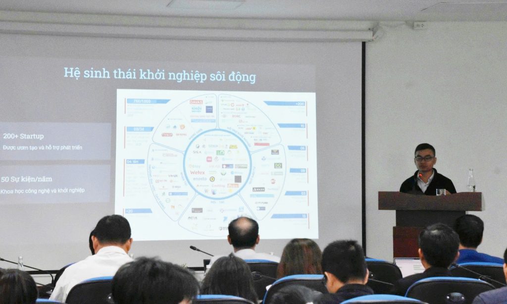 Ông Lý Đình Quân – Giám đốc SHi trình bày tham luận “Hệ sinh thái khởi nghiệp Đà Nẵng – Bước chuyển từ phong trào sang thể chế và cấu trúc PPP bền vững”