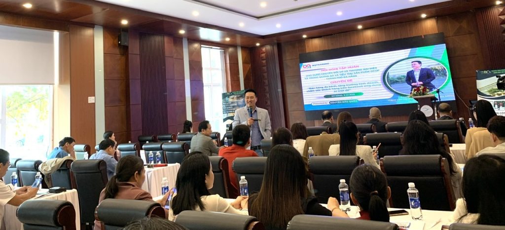 Mở đầu chương trình tập huấn, ông Nguyễn Bão Quốc – Founder & CEO BQTraining – chia sẻ về chiến lược bán hàng đa kênh trong bối cảnh hành vi người tiêu dùng thay đổi mạnh trên môi trường số. Ông chỉ ra các điểm nghẽn mà nhiều chủ thể OCOP đang gặp phải khi kinh doanh trên Facebook và nhấn mạnh việc sử dụng AI như một trợ lý đắc lực để tối ưu hoạt động kinh doanh.